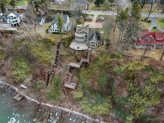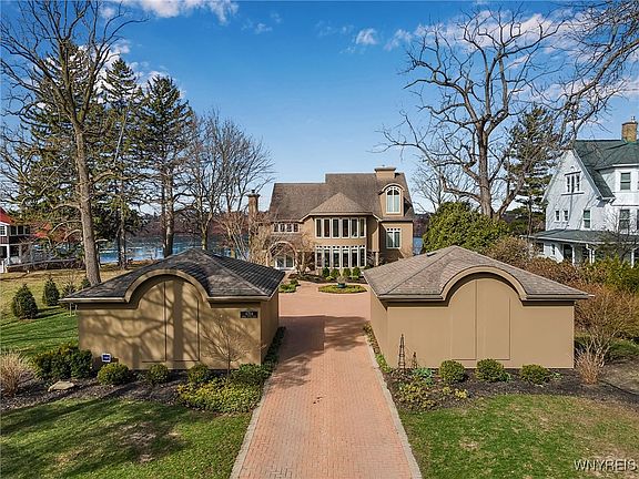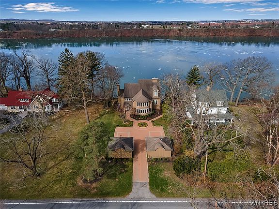 How would you like to wake up every morning looking out to a stunning waterfront view? Welcome to your dream home located on the Niagara River, located just outside the Village of Lewiston. This Contemporary home combines timeless architectural details with modern updates, all on a spectacular waterfront lot. This exceptional 3 BR, 3.5 bath residence spans over 4,670 sq ft across three expansive floors, offering luxury, comfort, & breathtaking River views. Step inside to a dramatic main living area with 17-ft soaring ceilings and floor-to-ceiling windows that flood the living room, dining area, kitchen, primary suite & 3rd floor with natural light, seamlessly blending indoor elegance with the serene outdoor landscape. Gleaming hardwood floors flow throughout the main living spaces, & a brand-new, updated kitchen features top-of-the-line finishes, large island, multiple large pantries & beverage center, perfect for both everyday living and entertaining. Secondary sitting room offers many possibilities as well. All 3 BR offer an ensuite. Primary suite is a peaceful sanctuary w/its own sitting area & gas FP, full ensuite bath, 2nd flr laundry, 2 walk-in closets & a wall of windows framing spectacular morning views of the Niagara River & Canada. Upstairs, the 3rd level provides a versatile space ideal for a guest bedroom, home office or bonus room—complete with its own full bath & steam shower, plus doors leading to your own private balcony. Outside you can enjoy four levels of decking, offering multiple areas to relax or entertain while soaking up panoramic views of the river: perfect for morning coffee, sunset view or launching your kayak. A private staircase leads directly to the river, making water access easy and enjoyable. Also, enjoy the convenience of two detached, 2-car garages, for a total of 4 garage spaces. One garage is also complete with water & heat. Entire home was recently painted inside and out, new hardwood flooring and carpets, updated electrical, some new Pella windows, extensive new landscaping as well. Close to Canada, Artpark & within walking distance to many Village amenities. Don’t miss your chance to own this slice of riverfront paradise!