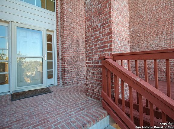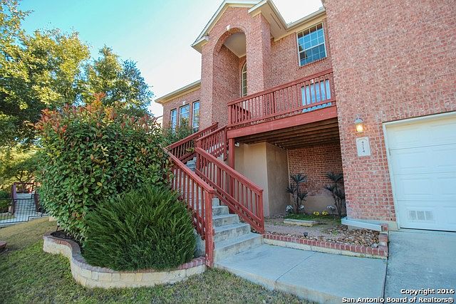 Wonderful full brick home is perfect for entertaining and outdoor living with beautiful flagstone patio covering much of back yard & deck added to front to enjoy views. Steps in front but back is level. Updated stainless appliances, tons of closet space plus Texas basement for additional storage. Large rooms, open floorplan, gameroom & 2 full baths up. **RECENT ROOF** Gated community convenient to Hwy. 151 & Loop 1604, plus shopping, new movie theatre & medical facilities. Ready for new buyer.