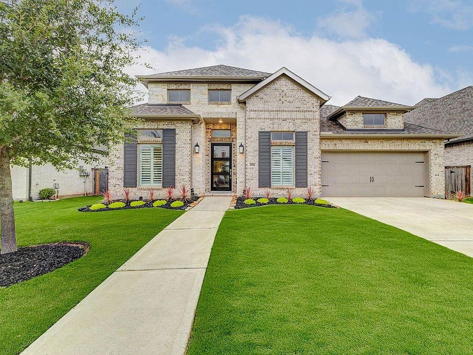 Welcome to your beautifully maintained Perry Home nestled in the desirable Fulbrook on Fulshear Creek community. This 4-bedroom, 3.5-bath residence with a 3-car epoxied garage features an open-concept layout with soaring ceilings, wood-look tile flooring, and abundant natural light. The stunning kitchen boasts an expansive quartz island, wraparound bar-height counters, shaker-style cabinetry, designer backsplash, upgraded appliances, and a convenient butler's pantry. Spacious living room centers around a modern fireplace, while the game room, private study, & formal dining offer flexible living. The primary suite includes a spa-like bath with marbled tile, a soaking tub, & dual vanities with two walk in closets. Guests will enjoy their own private suite complete with a walk-in closet and full bath, and you also have two other rooms that share a full bathroom. Outdoors, enjoy a covered patio, upgraded tile decking, and lush turf installed in 2024 that is under warranty and transferable!