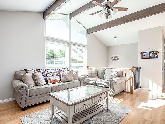 Be in a new home in time for Thanksgiving! You will love this move-in ready home with modern touches such as a spacious entertaining area with vaulted ceiling and stylish exposed beams that flood this home with bright beautiful light. Updated kitchen with white cabinets, modern laminate flooring, stainless appliances, and a striking custom backsplash will make entertaining a dream. Speaking of updates and upgrades, brand new primary bathroom has literally just been completed this month, and you'll love the modern design choices in paint, fixtures, and other touches throughout. Don't miss the huge backyard with plenty of space for entertaining and gathering, including a fun playset! With the newer HVAC system you'll be totally comfortable regardless of the temperatures outside, and one less thing to worry about for years to come. Located near multiple destinations for dining and entertainment, as well as minutes away from city parks and other recreation opportunities as well as quick commute access. This home is a true gem, schedule your showing today and experience all that this fantastic property has to offer!