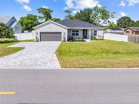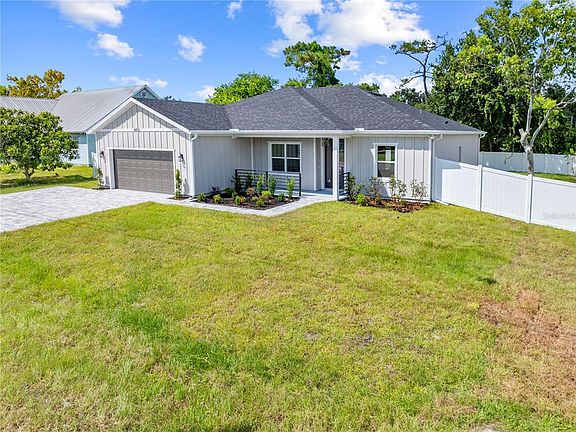 Brand New FOUR bedroom TWO bath home on a 0.28 acre lot, with a fenced back yard. This beautiful Ranch style home offers a front and back covered porch, additional pavers in the driveway to make turning around easier. The interior design is state of the art newest colors and fixtures in all rooms. All 4 bedrooms and living room have remote control ceiling fans and cable outlets. The interior features 5 1/4" baseboards, Luxury Vinyl Plank flooring throughout except both baths, they have ceramic tile, a decorative electric fireplace in the living room, and quartz counters in kitchen and baths. The kitchen features a closet pantry, breakfast bar, 42" cabinets with crown and base molding, backsplash, convection oven, pendant lights, multiple drawers and a stainless steel sink. The laundry room is versatile and includes cabinets, a pocket door to the kitchen, a dowel and niche for hanging clothes. There are 2 linen closets, one in the master and one in the hallway where the guest bath is. The Primary suite features a 5 x 13 walk in closet, a huge walk in shower, dual sinks and several drawers in the vanity. This gorgeous home is already equipped with all kitchen appliances and a water softener system. Schedule your tour today!