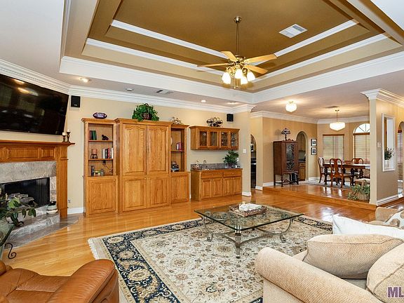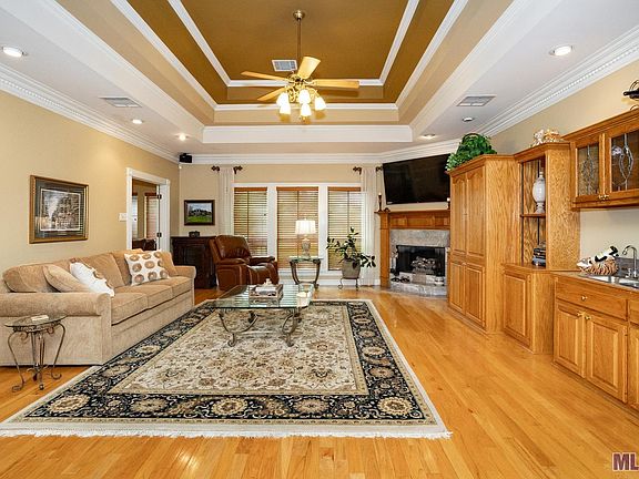 NEW WINDOWS BY WINDOW WORLD INSTALLED 8-2-2024. NEW ROOF INSTALLED DECEMBER OF 2023. Beautiful 3 BR 2 BA custom built, split, floor plan home nestled on 0.77 acres. See "DOC" section for upgrade list. Kitchen features granite counter tops with under mounted sink and brick paver flooring. Living room features gas, vent less fireplace, built-in shelving, recessed speakers, wet bar with cabinets, triple recessed ceiling and wood flooring. Crown molding throughout the home adding beauty and elegance. Master bedroom features double recessed ceiling, 2 closets with one of them being a walk-in closet and wood flooring. Master bath features open concept with large shower and stand alone tub, double vanities with under mounted sinks, granite counter, framed mirror and another walk in closet. Bonus room/study/office conveniently located near living room and access door to deck at rear of home. Detached workshop has full bath and measures 27 x 27 feet with walk-in door and rollup door. Enjoy relaxing and entertaining in this beautifully landscaped front and backyard. Brusly School District. Stress free commutes on the west side of the river. Located near local restaurants, commercial and retail businesses. Call for your showing today.