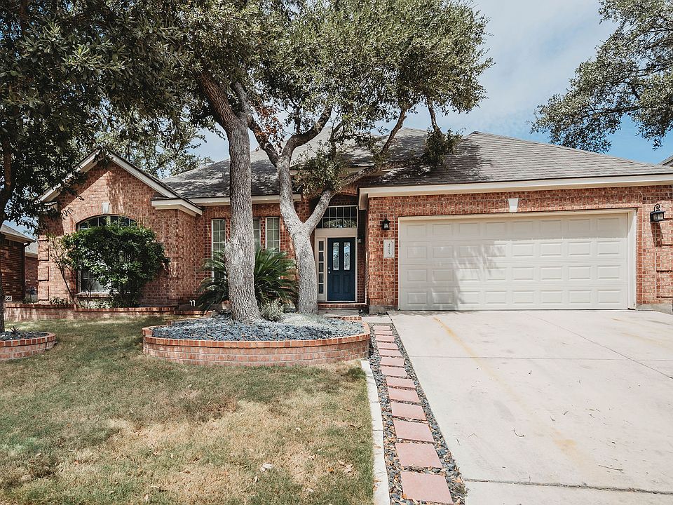 Beautiful and open floor plan with large bonus room on the 2nd level! Hardwood, tile and carpet throughout home. Come and see this amazing home in the highly sought after neighborhood of Stonegate Hill. Owners suite with large bathroom and walk-in closet. Island kitchen with attached eat-in area as well as separate formal dining. Large central living area with fireplace and large media area. Dedicated and private office space, 2 additional downstairs bedrooms with shared bathroom. Separate laundry area next to 2 car garage. Fully fenced backyard with grass and gravel areas, newly renovated deck perfect for entertaining! Neighborhood amenities include an outdoor swimming pool and patio, gated access, playgrounds, tennis/pickleball court and sport court. Easy access to HWY 151, 410 and 1604. Close proximity to Sea World, HEB, shopping and entertainment. This one won't last! Welcome Home!!