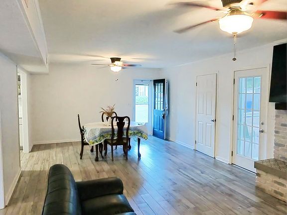 Discover this charming home nestled in a quiet cul-de-sac in the desirable Foxfire subdivision. Freshly painted and truly move-in ready, this residence features LVP and tile flooring throughout, along with beautifully updated kitchen and bathrooms. The kitchen boasts quartz countertops, a subway tile backsplash, and stainless steel appliances. Enjoy an open floor plan with a spacious living room centered around a gorgeous brick, wood-burning fireplace. Step outside to a huge fenced backyard offering endless space for outdoor activities, plus a storage building and a wired workshop—perfect for hobbies or extra storage. And don't miss the unique bonus: your very own banana tree! Schedule your showing today!