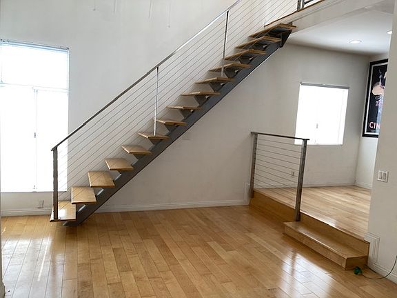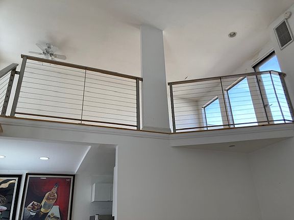 Top floor. Quiet 16 unit security building filled with Industry professionals. 20 ft. ceilings and tons of windows. Private sundeck. open steel staircase to Large Loft. NEW hardwood floors. Modern kitchen with stainless appliances. tiled baths with one deep tub and one walk in. sliding door organized closets. central A/C, heat. building laundry. security cameras. Garage parking 2- side by side parks. One year lease. Sorry NO dogs. This is a NO SMOKING (THAT INCLUDES ALL SUBSTANCES) BUILDING.