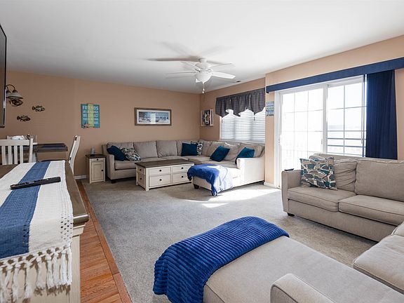 FOUR-BEDROOM CONDO WITH OCEAN VIEWS & CLOSE TO THE CONVENTION CENTER. Looking for instant income? Property already has 2 weeks booked for the summer 2026 season. Located close to everything you love about the Wildwoods—the beach, boardwalk, Convention Center, restaurants, and nightlife—this top-floor bi-level condo offers great rental performance and coastal comfort. The spacious great room features a comfortable living area with two large sectionals, providing generous seating for all your guests, a well-equipped kitchen with hardwood flooring and plenty of cabinetry, and dining space that opens to a large, private deck with ocean views—perfect for breezy evenings. Down the hall, you’ll find a primary suite with private bath, plus two additional bedrooms and a second full bath. A fourth bedroom on the upper level provides added privacy and flexibility for guests. Enjoy year-round use with central air and heat, plus an in-unit laundry room with stack washer and dryer for convenience. The two-car garage offers ample parking and includes a private storage room ideal for bikes, beach gear, and all your shore essentials. The condo is being sold turnkey, including furniture, décor, kitchenware, and electronics, so you can start enjoying or renting immediately. Note: Square footage was taken from tax records and should be verified by the buyer prior to purchase.