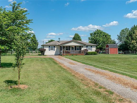 Turn Key! Trendy! This super nice renovated home sitting on 1.10 acres will sell in a flash! Hickory hardwood flooring & 'hand hewn' Mantel captures your eye upon entering the home (wood for the mantel was taken from a 150 year old tobacco barn). Remodeled kitchen boasts a Farmhouse sink, Butcher Block counters & Hickory hardwood flooring. Owner's Suite measures 15 x 13 and features a large walk-in closet & is completed by an 8 x 8 Master Bathroom with frameless shower & hand crafted dual vanity! Two additional ample sized bedrooms enjoy a remodeled bathroom. All bedrooms have newer neutral toned Stainmaster carpeting. NEW: HVAC, water softener, lighting, paddle fans, doors, and a 12x10 mini barn/shed w/loft. A large covered front porch is perfect for relaxing & the fenced backyard is perfect for your furry friends! Welcome Home!