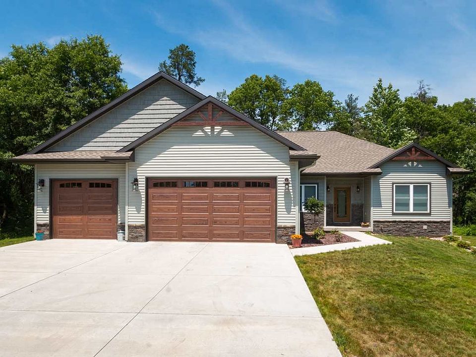 This contemporary executive 1 year old home located within the prestigious White Tail Subdivision was built by Origin Family Home builders. Better than new this immaculately maintained home is ready to be yours! The living room, dinette and kitchen are all interconnected, in a open concept layout, and volume ceilings allow for the feeling of spaciousness. A chefs kitchen will WOW you! Quartz countertops, large center island for eating and prep work, plenty of cabinet space with generous pantry beverage cooler and all high end SS appliances and a Chefs plumbing fixture caps off this gourmet kitchen! Engineered Bamboo flooring and crown molding complements the custom Cherry cabinetry throughout the kitchen and built ins in the living area. Architectural windows with transoms add to the airy, contemporary feel of this home. California split bedrooms, features a master BR with cherry built ins, generous walk in closet and a beautifully appointed master bath with his and her vanities , cherry cabinetry and walk in shower with glass enclosure that will be sure to impress! Entering off the fully insulated garage ( complete with basement entrance) you'll find built in cubbies, main floor bath and half bath with granite countertops and cherry cabinets. An open staircase with rod iron embellishments leads to the lower level where you'll find a very spacious family room featuring polished stained cement floor with egress windows, 4th bedroom with walk in closet, and large full 3rd bathroom. Lots of extra space for your special needs, plus unfinished basement storage room. The back yard is ready for relaxation and entertaining with stamped stained cement patio. Wooded lot can make you a nature and wildlife lover! Multiple plantings from Egle landscaping and blue prints are available for review. Not much to want for with this offering, call today for your personal showing!
