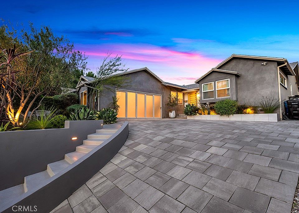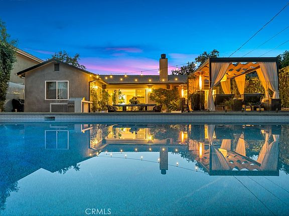 Welcome to this beautifully reimagined Sherman Oaks residence, where modern design meets resort-style living! Every inch of this home has been thoughtfully upgraded inside and out, blending luxury finishes with functional comfort and effortless indoor-outdoor flow. Step inside to discover smooth walls and ceilings, custom-built cabinetry, and an inviting open layout filled with natural light. The stylish European-inspired kitchen features sleek Caesar stone countertops, custom cabinetry, double ovens, and premium stainless appliances—perfect for the home chef. The converted garage adds approximately 400 sq. ft. of finished living space, ideal for a family room, gym, or studio, while the finished attic with built-in stairs provides additional versatile space. The primary suite offers a custom-built walk-in closet with elegant cabinetry and media storage. Bathrooms and laundry have been tastefully updated, and thoughtful details throughout include new HVAC and A/C, a new water heater, upgraded insulation for energy efficiency, and a security system with hardwired cameras. Outside, your private oasis awaits and is ready for entertaining! Enjoy a fully renovated backyard featuring a new PebbleTec pool regraded to 5’ depth, above-ground jacuzzi, and a custom cabana with chandelier lighting and fire pit—perfect for entertaining or relaxing under the stars. A built-in BBQ, outdoor bar with sink, and new surround sound system extend your living space outdoors. The yard also includes a new irrigation system, pavers, lighting, and raised stucco privacy walls for added seclusion.Additional highlights include new dual-pane windows and doors, smooth stucco exterior, Catalina stackable sliders for seamless indoor-outdoor flow, and refreshed curb appeal with new landscaping and hardscape. This turnkey home embodies the best of California living—modern comfort, timeless design, and a true entertainer’s backyard in a highly desirable Sherman Oaks neighborhood close to top schools, dining, and shopping.