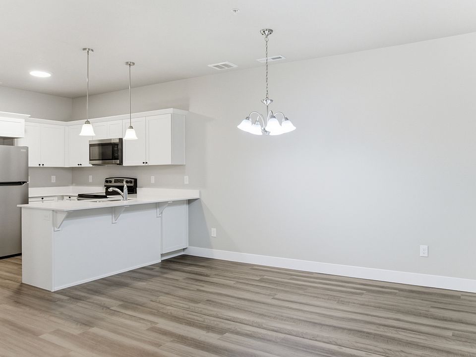 Sleek countertopsSerene retreatState-of-the-art appliancesContemporary kitchenThoughtfully designed layoutModern fixtures and finishes