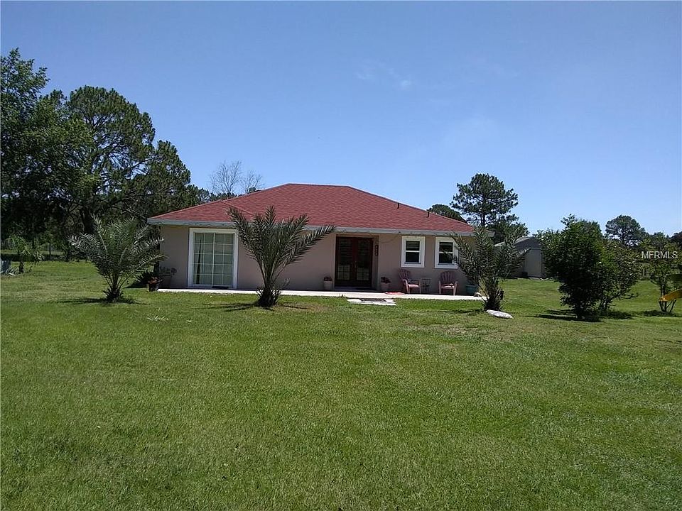 This 10 acre Groveland Farms tract has a newer concrete block & stocco home (2015) that has been very well taken care of. Home has a open floor plan and split bedroom too. The master bath is handicap equipped with a roll-in shower and duel sinks and water closet. The tract is fenced and crossed fenced. Current grazing cows and lots of chickens coops. All kinds of fruits, citrus, avcados & banana trees just to name a few of the varieties. On this large track you'll have plenty of room for your large vegable garden. And possible 2nd homesite for other family members.