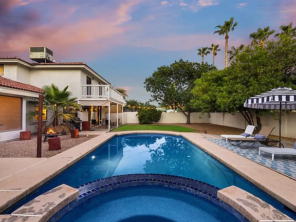 Treat yourself to a luxurious rental in this spacious and serene home with lots of natural light and incredibly comfortable furniture. Enjoy a large outdoor patio space with a private pool, dining area, BBQ grill and sun beds. Perfect for a family or a group of friends. If you've been looking for a modern and peaceful rental with amazing amenities in Phoenix, look no further. HUGE primary closet, bedroom and bathroom. TWO living rooms. Second bathroom upstairs has brand new shower/tub.