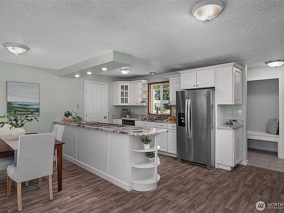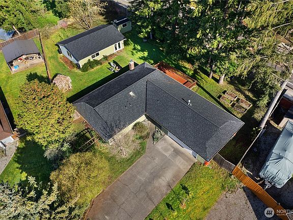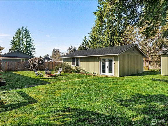 Wonderfully upgraded rambler with a guest house near Pattison Lake with HOA access to the private park and dock. The 3 BR, 1.75 BA, 1226 SF home sits on a fully fenced 1/3 acre. Major updates include new insulation and new high efficiency heat pump HVAC add AC to the home. New granite countertops in the kitchen and newer appliances create an enticing space to cook and entertain. The LR has a cozy FP and french doors lead out to an expansive TREX deck. Newer roof, flooring, and paint make this home move in ready. The recently updated 816 SF finished studio with 3/4 bath is perfect mixed-use space for hosting or hobbies. Other features; peach, apple, and pear trees. Over $100k+ of upgrades made since 2022. Must see!