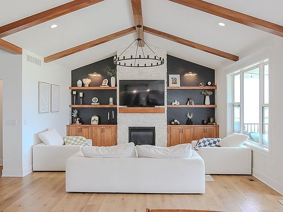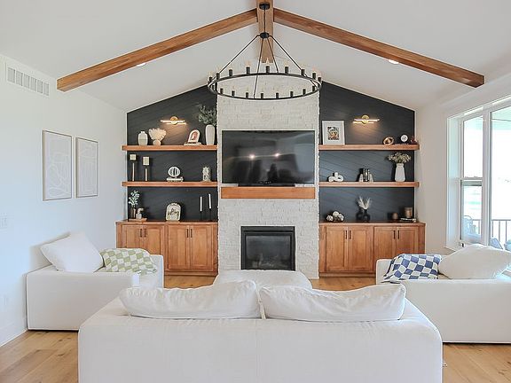 Welcome to this beautiful home offering four bedrooms and 3 bathrooms and a 3 car garage. Step inside and enjoy the open floor plan with vaulted ceilings and rich wood accents in the living room centered around a cozy fireplace and custom built in shelving.The kitchen has a eat in area featuring a walk in pantry ample cabinet space room for dinning room table -perfect for everyday meals or hosting a gathering.The primary suite has a generous sized bathroom custom title shower plenty of cabinets for storage and a large walk in closet that conveniently connects to the laundry area. Also you will find another bedroom and full bath along with access to a covered back patio-idea for relaxing evening or that morning coffee. Down stairs has two additional bedrooms full bathroom wet bar and plenty of room to entertain.This home is must see.