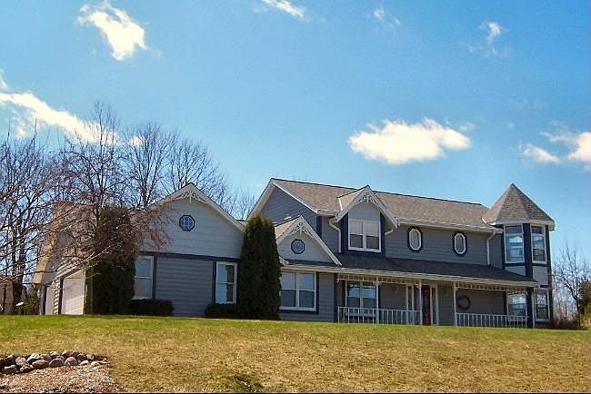 Sought after neighborhood near Holy Hill, Richfield, WI. Traditional colonial floor plan with Victorian architectural flair. Oak hardwood floors welcome you in the foyer and extend into the formal living room, dining room and eat in kitchen. Crown molding enhances many of the rooms as well as windows that look out to great views of woods, wildlife and occasionally Holy Hill. Kitchen updated with counter tops and includes appliances and a walk in pantry. Spacious main level laundry room and adjacent den which could be 4th bedroom. Upstairs you'll find a master suite large enough for king size bedroom furniture and a reading nook inside the turret. Master bath has a luxurious corner whirlpool tub, double vanities and walk in shower. Loft/landing area suitable for a roll top desk. Gently sloping lot is bordered by trees, shrubs and flowering sumac. Hot tub and 1 year home warranty included. 2770 sq ft per builders plans, not verified by broker. Ann Lebiecki is a licensed Real Estate Agent with Shorewest Realtors.