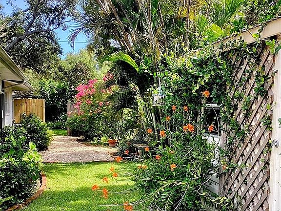 Under contract-accepting backup offers. This Florida bungalow's feng shui is unmatched! Thoughtfully renovated with a modern/coastal vibe and mid-century terrazzo flooring, the newly remodeled kitchen features a farmhouse sink, shaker cabinets, and new stainless steel appliances with an open floor plan to the dining and lounge area. The adjacent Florida room is bathed in natural lighting with a wall of windows that look on to the garden! Renovated bathrooms feature brass hardware, slate floors and subway tile for a clean, modern sensibility. Property is immaculately landscaped, enveloped in lush foliage that fully surrounds the house, and planted with Florida natives for an exotic feel while also allowing for easy maintenance. Stone pathways and wrought iron gates provide a pleasing, oasis-like aesthetic. Located in the highly rated school zones for Phillippi Shores Elementary School and Riverview High School, and just fifteen minutes to Siesta Key beach, as well as close proximity to Trader Joes and Sarasota Medical Center. New roof and electrical panel (2022).