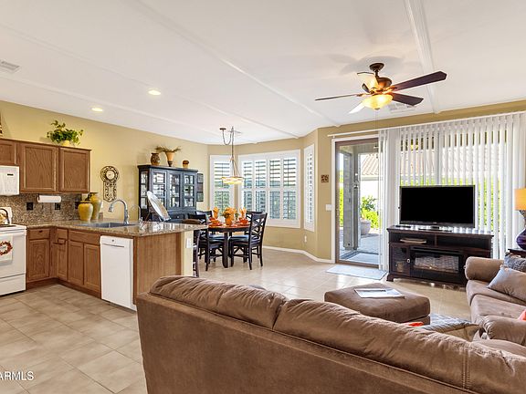 Beautiful Wildflower model for lease in the 55+ gated community of Trilogy at Power Ranch. This N/S facing home offers approximately 1,369 sq. ft. with an open floor plan including a kitchen with granite counters, breakfast bar, pantry, and all appliances. The extended primary suite features a bay window, walk-in closet, linen closet, and private bath with walk-in shower. The den/office can be used as a guest bedroom with access to a full bath. Enjoy resort-style amenities including golf, pickleball, pools, fitness center, and community activities. Golf cart included, covered patio, and two-car garage complete this move-in ready home ideal for seasonal or long-term rental. 6 Month minimum rental term, prefer 1 year.