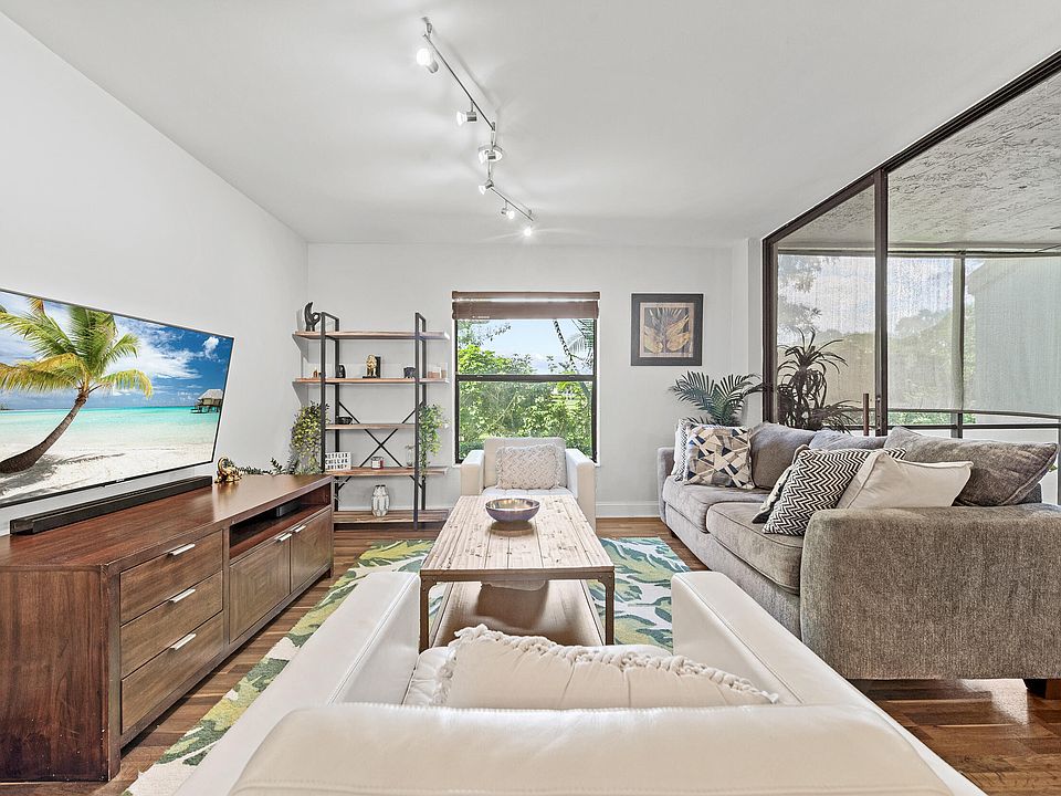 Granite countertopsIn-unit washer and dryerSpacious primary suiteSleek laminate flooringCustom walk-in closetOversized screened-in patioStainless steel appliances