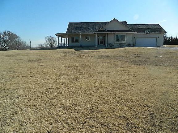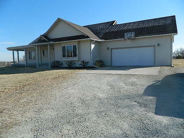Your country home awaits! Nearly 2 acres of wide open spaces yet conveniently just minutes from town. Welcome through the open foyer area with vaulted ceilings. You won't lack for space in this large home with almost 3900 finished sq ft and 10' ceilings make it feel all the more spacious. Main floor features open floor plan with large living/dining/kitchen area. Kitchen appliances will remain and you will love the maple cabinetry. Center island for cooking and additional eating space or entertaining. Kitchen opens to the living room where the views outside are peaceful and vast. Loads of natural light plus another door out to the wraparound porch. The wood-burning fireplace centrally located in the living room will be a hit in the winter months. Also on the main floor is a formal dining space or a wonderful study area with built-in maple cabinets, a large laundry room, and a bedroom. The master suite is located on a wing all its own. With a vaulted ceiling and walk-out balcony, you will love the privacy offered here. The master bathroom (10x15 - wow!) has a garden tub, separate shower, lots of bathroom counter top space and even a vanity plus there are two walk-in closets and a skylight. The other upstairs bedroom is located over the garage and also has a vaulted ceiling and private access. Loads of living area but there is a basement, too. Huge family room with pool table (it stays) and plenty of additional space for whatever you desire. There are 2 more large bedrooms in the basement plus a bonus room with closet but no window for extra restful sleep. Basement walls are thick and were made with insulated concrete forms in an effort to withstand tornadoes per the seller. Over-sized two car, attached garage is fully finished with shelving and over-head storage spaces plus work areas and peg boards for all your tools. All electric home with septic system and rural water! New class 4 roof in 2018. No HOA fees. No special assessments. Outside the home there is plenty of room to roam and it's a blank canvas for landscaping if you are so inclined. Or if a pool/patio area sounds better, that would be great, too. Gems like this don't come up too often ~ don't miss it!