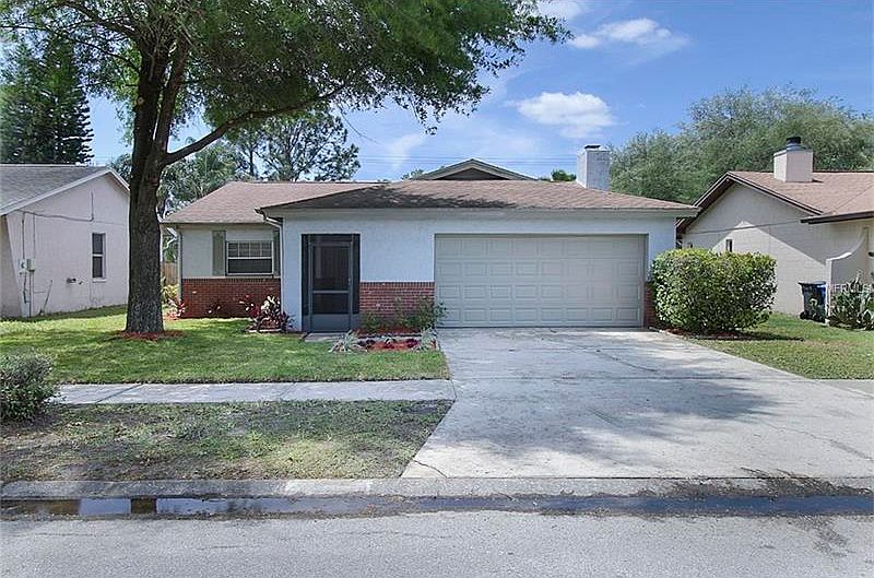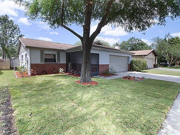 Move in ready 3 bedroom 2 bath in the sought after Beacon Meadows in Carrollwood. This home has great curb appeal and features a large living/dining room with vaulted ceilings for an open feel, wood burning brick fireplace with a new cap installed in 2005, an oversized 2 car garage w/ hurricane panels, a screened front entryway, fully fenced in backyard w/ a privacy wall in the back, and plenty of room to add a pool. Sliding doors lead out to the screened lanai with a built in planter. The fireplace was cleaned and the electric garage door opener was replaced 2 years ago.
