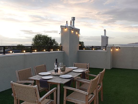 Guest parkingCommunity gathering areaMountain and city viewsGas fire pitRooftop deckOpen-concept livingAttached garage