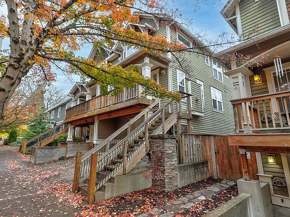 Stunning Craftsman townhome in the heart of close-in Reed neighborhood with no HOA! Meticulously crafted with authentic cedar siding, superior old-style trim and finish, and expansive windows that flood the home with natural light and create an elegant, timeless ambiance. The open main floor flows seamlessly with a spacious living and dining room showcasing built-in cabinetry and a cozy gas fireplace, perfect for gatherings. The chef's kitchen is a standout, complete with a large center island, walk-in pantry, convenient pot rack, and ample storage. A separate main-floor family room offers a second gas fireplace for added warmth and comfort. Upstairs, discover two luxurious primary suites plus an open loft/den ideal for a home office or relaxation space. The lower level features a third primary suite with a bath, providing maximum flexibility for guests, multi-generational living, or a private retreat. Step outside to a fully fenced backyard with a generous patio and an oversized deck designed for effortless entertaining and outdoor enjoyment. Additional highlights include an extra-deep garage and abundant storage throughout. Nestled on a quiet, established low-traffic street with exceptional transit and bike scores, this home offers easy access to vibrant shops, restaurants, parks, and all the best of Portland living. Walk, bike, eat, and play with ease!