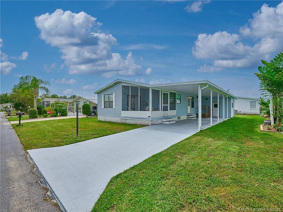 EXTREME MAKEOVER!! Newly renovated 2 Bedrm/2 Bath Manuf Home in Pinelake Gardens & Estates, 55+ Community in South Stuart. WIDE OPEN PLAN - SO LIGHT & BRIGHT. Brand new Kitchen w white Shaker Style Cabinets, New Appliances, new Counters, Blue subway tile backsplash, new Lighting, new extra-large deep sink w upscale faucet w spray. New Luxury Vinyl Plank Flooring throughout the home. Freshly painted in neutral colors, new "knock down" finish on ceilings & new baseboards. Right off the LR is another area which could be an office or den w slider out to the charming front screened lanai. The Master Bedrm is enormous w ensuite full bath w New stylish tile step in shower, new vanity & chair-height toilet. The 2nd Bedrm is also a good size w a new 2nd full bath on the hall. At the end of the long carport is a utility shed w washer/dryer. 2 Community Clubhouses w heated pools/spas, shuffleboard, pickleball & scores of activities. $926/Mo Lot Rent. 2 large dogs allowed. Mins to Ocean Beaches.
