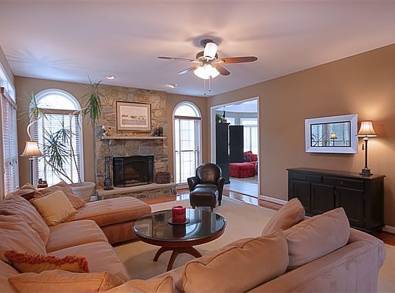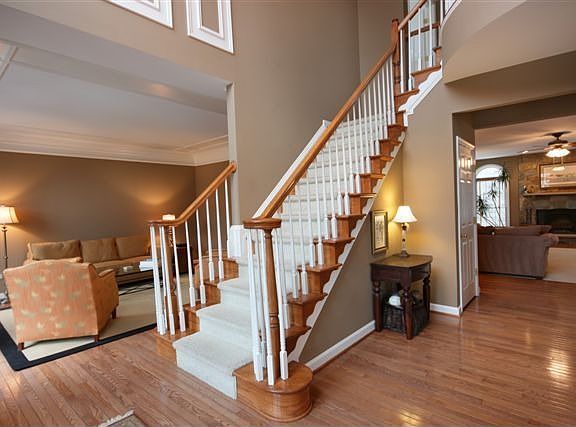 Brick front Winchester Browning model with numerous upgrades and a sun room addition on a premium cul-de-sac lot backing to wooded parkland and the Trump National Golf Course. Walking paths lead from the community to the Potomac River.Main Level Two-Story Foyer features hardwood flooring, extensive moldings and a dramatic wood staircase with carpet runner and chandelier. Living Room featuring hardwood flooring and custom crown and ceiling molding. The spacious Family Room has a floor-to-ceiling, raised-hearth stone fireplace flanked by windows with wood blinds as its central focus. Additionally, there are recessed lights, a ceiling fan and hardwood floors with inlaid carpet. A Library with entry via French doors, offers a wall of custom cherry bookshelves and cabinets, hardwood flooring, two walls of windows, which includes a bay window, wood blinds and crown molding. A Powder Room, located between the library and living room, offers a pedestal sink. The spacious Dining Room offers a bay window, chandelier, crown and chair molding, wainscoting and hardwood floors. In addition, there is a Butlers Pantry and wet bar between the dining room and kitchen. The huge Kitchen features an expansive center island with breakfast bar and gas cook-top. Other kitchen features include granite counters, ceramic tile flooring, cherry cabinetry, recessed lighting, a large pantry, and plenty of counter space. Appliances include a 4 burner gas cook-top, double wall ovens, microwave, dishwasher and refrigerator. A Rear Staircase leads to the bedrooms. Casual Dining/Breakfast Room at end of kitchen offers a built-in desk and glass-front cabinet, a wall mounted flat screen television, ceramic tile flooring, recessed lighting and windows on two sides An inviting Sun Room (an optional addition adding square footage to the house) features a ceramic tile floor, tray ceiling and ceiling fan is located off the kitchen. The room offers a wall of windows with Plantation Shutters and French door to the custom deck.Upper Level The Master Suite features neutral carpeting, tray ceiling, ceiling fan, custom molding and huge walk-in closet featuring built-in storage; columns and a knee wall separating the bedroom from the sitting room. There is also a linen closet. The luxurious Master Bath offers ceramic tile flooring, dual cherry vanity, separate water closet, whirlpool tub and an oversized ceramic tile shower. Bedrooms 2 & 3 feature neutral carpeting and are separated by a buddy bath with cherry vanity and dual sinks. Bedroom 4 makes a perfect guest room with windows overlooking a private woodland view. The Hall Bath features tile flooring, double cherry vanity and shower/bath duo. The Laundry Room is conveniently located on the bedroom level. It has overhead cabinets and a linen closet. There is also an additional linen closet adjacent to the laundry room.Walk-Out Lower Level The spacious Recreation Room offers neutral carpeting, a billiard table (which will convey), recessed lighting and sliding glass door to the private slate patio surrounded by beautiful landscaping. A Den with double closets is located across from the fourth Full Bath. The bath offers tile flooring, cherry vanity and bath/shower duo. Exercise/Bonus Room with mirrors is currently used as a gym. A large Storage Room contains a workbench and is perfect for a workshop Utility Room with laundry sink and additional storage.Additional A huge Custom Deck overlooks the slate patio, professionally landscaped yard and wooded view of parkland Security System Seven-Zone Irrigation System Three-Zone heating and cooling system Two-car Garage with a side door and room for storage A Play Gym with swings and slides in the rear yard Slate Patio off the recreation room Additional concrete Patio under the deck Rivercrest CommunityRivercrest, also known as South Bank, is a small neighborhood in eastern Loudoun County. It s a great location just across the Fairf