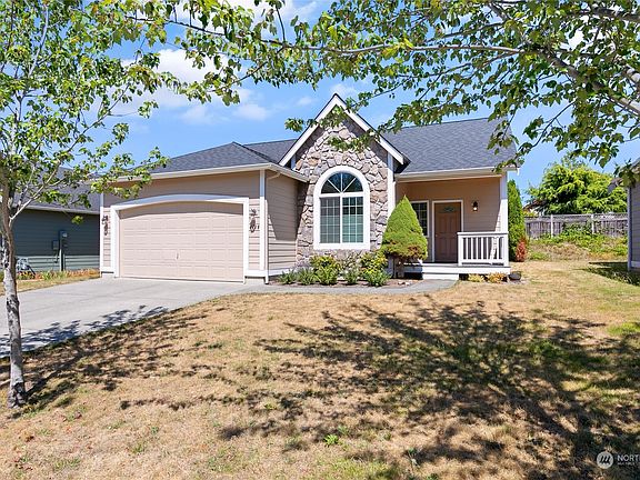 This charming 3 bed 2 bath single-level home is a must-see! Abundant updates allow you to move right in. Fresh interior and exterior paint, brand new carpets including a newer roof for peace of mind for years to come. High vaulted ceilings elegantly lure you into this open-concept turnkey home, equipped w/ a large kitchen with slab granite, a two-car garage, & a primary suite w/ two closets & a full bath. Large backyard enclosing a garden ready w/ tomatoes, strawberries, & an apple tree! Perfect location only 0.3 miles from Cordata Park Trail which leads you to both Julianna & Cordata Parks in less than a mile, & Whatcom Community College nearby.