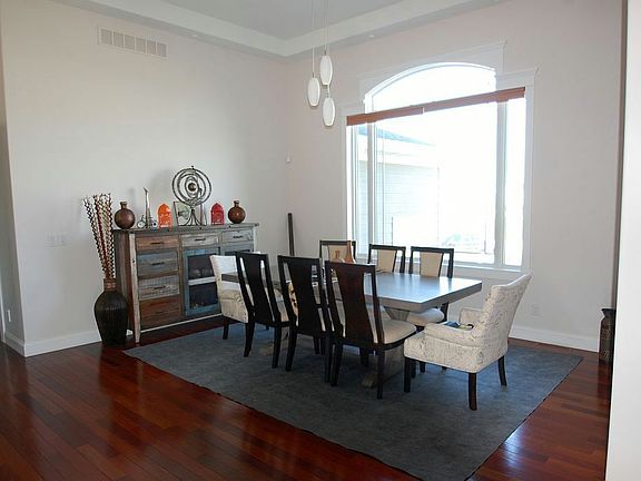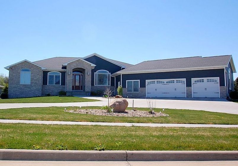 Owner's pride in this custom built one of the kind out there on the market. Tastefully decorated to the top! As you enter the front door you will be astonished with the breathtaking 12 ft tray ceilings in the formal dining and living room with hickory flooring. French doors leads you from the formal dining room to a stone covered flooring porch with swing. Office/den with lots of natural lighting, half bath with granite and tile finishes. The oversized master suite offers 11 ft tray ceilings claw custom tub and 2 separate vanity and tiled sinks, walk in tile shower with specialty jets, and walk in closets. The unique 10 ft kitchen design is angled for comfortable entertaining. It offers cort counters and a separate island with sink and larger island for the family. Large built in pantry, and state of the art appliances. Gas and electric options, separate eat in kitchen area with beautiful view of the backyard, white porcelain floors in the kitchen and main floor laundry mud room. Right off the kitchen catch up on family time in your great room with gas fireplace. Two bedrooms are located on the main floor with Jack and Jill bath with tub and shower. The basement has an amazing lay out for all entertaining. It starts with a family room , sitting area for games, with bamboo flooring and a wet bar with stone and granite countertops. 2 additional bedrooms with full baths and tile walk in showers. The walkout is perfectly designed for the built in covered outdoor kitchen with granite and stone. The entire home is wired inside and out for surround sound. Large storage room and half bath. The garage is oversized and offers a small kitchen. Oversized Anderson windows and GEO Thermo. Upgraded landscaping with circle driveway. Great family home!