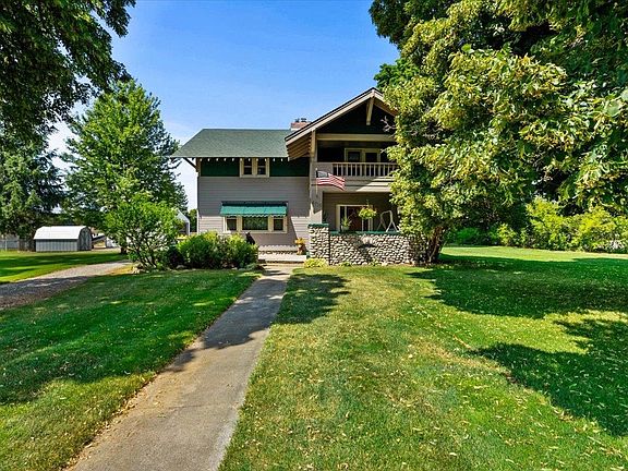 Absolutely stunning 1917 Farmhouse bursting with charm and character. Located in Spokane Valley, close to schools, and shopping and an easy commute in any direction. The old stone wall along the road, stone accents on the exterior of the home, and inviting covered front porches welcome you to this iconic home. It sits on a large .71 acre lot with mature trees and landscaping that give a surprising amount of privacy from the street. The 24x30 shop/detached garage and shed provide plenty of storage for your vehicles, mowers, boat, etc. And there is an abundance of parking space with plenty of room for an RV. The original woodwork and crown molding on the main level are in amazing condition. The bathrooms and kitchen have all been updated, there are newer windows, central air, brand new solar panels to offset energy costs, and other modern updates that make this unique home the perfect mix of old charm and modern amenities.