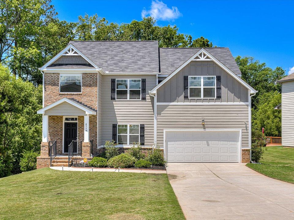 Location, location, and privacy!!!! This Beautiful home with an additional unfinished basement is located in an Evans amenity subdivision with highly desirable schools! Home backs up to Greenspace and is surrounded by trees at the BACK and LEFT SIDE! No one can build on these areas so you don't have to worry about neighbors on top of you! BRAND NEW ROOF with 30 year architectural shingles. The kitchen features granite countertops, stainless steel appliances, stained cabinets, pantry, tiled backsplash and an eat-in kitchen that opens up to the living area, complete with a built-in gas log fireplace, making it ideal for family and entertaining. Luxury vinyl plank through all main areas on the main floor, which also includes one bedroom and bathroom and formal dining room right off the foyer. Upstairs you will find the owner's suite to include a large sitting area, walk-in closet, garden tub with separate shower and separate vanities. Fourth bedroom upstairs would also make a great office with fresh paint and new LVP flooring. Mature, landscaped yard with an above ground, freshly painted deck outback, perfect for gatherings and barbecuing. Spacious unfinished basement with built-in storage, plumbed for a full bath, to make it your own man-cave, woman-cave, entertainment area or additional living area. Freshly painted, oversized garage with drop down storage and a brand-new, insulated garage door. Backs up to a wooded area for additional privacy. This home is already prepped with a French Drain and storm ready with a 50amp generator inlet box! Located near restaurants, shopping, I-20, Fort Eisenhower and top-rated Columbia County Schools.