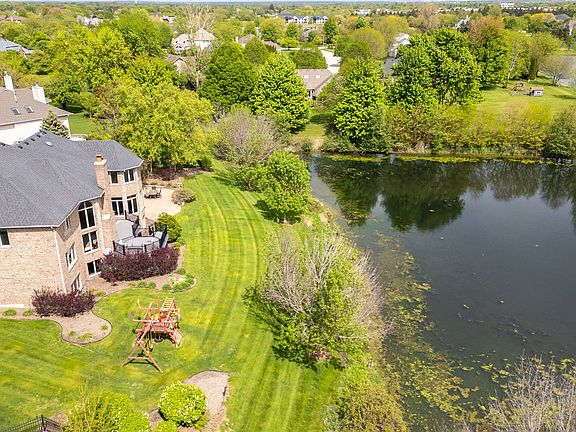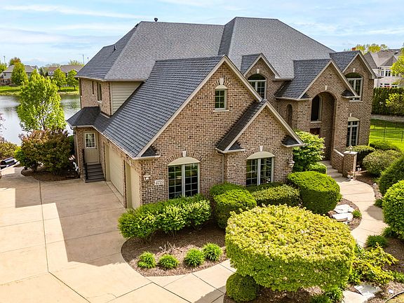 Welcome to this exceptional, all-brick custom home built by BARZI luxury builders, located in the highly sought-after Tamarack West subdivision. This elegant residence showcases timeless craftsmanship with stunning millwork, arched entryways, fluted columns, a grand custom staircase, and extensive hardwood flooring throughout. The gourmet kitchen features rich cherry cabinetry, granite countertops, a center island, breakfast nook, and a butler's pantry all with sweeping views of the private pond-south facing views. Enjoy the spacious two-story family room with a dramatic decorative fireplace and a wall of windows. Step outside to the Trex deck overlooking the lake-perfect for relaxing or entertaining. The fully finished English basement offers an impressive extension of living space, complete with a second fireplace, custom cherry wood bar, additional full bath, and two extra bedrooms- ideal for guests or multi-generational living. Upstairs includes generously sized bedrooms all with walk-in closets and spa-like bathrooms, all thoughtfully updated with high-end finishes. The home includes smart home upgrades throughout and is located on a quiet cul-de-sac within the acclaimed District 204 school system, including award-winning Neuqua Valley High School. Offering 7000 sq feet of total living space on just under a half-acre lot. South-facing back yard-North North-facing home. Don't miss this rare opportunity to own a one-of-a-kind luxury home in Tamarack West.
