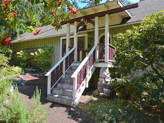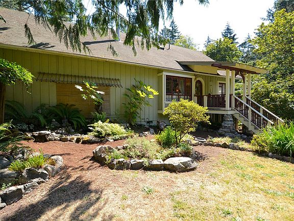 Enchanting Arts & Crafts style 3 bedroom home overlooks a tranquil pond w/fenced garden on 4.8+/- ac.near Eastsound Village. Tucked into a knoll at the top of a rise, this unique location offers both southern & northern light in a park-like setting. Custom craftsman details include: Viking range, clear fir trim & floor, cabinets & paneling, over-sized claw foot tub, slate & tile floors, sun-filled dining room, covered porch, 2 car garage, studio/playroom. Mature maples, cedars & flowering trees.