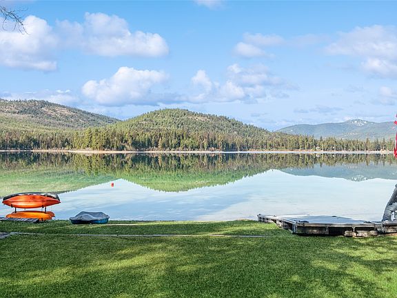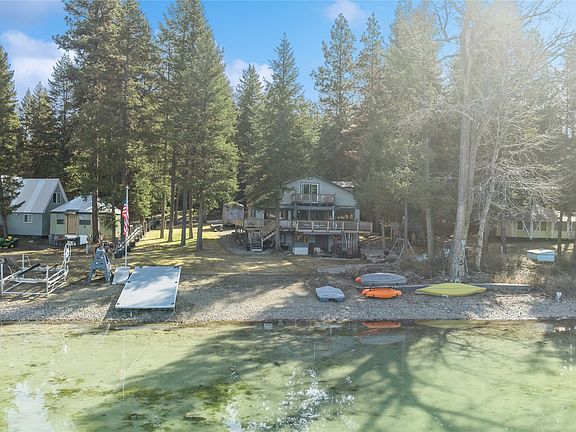 Highly-sought after Crystal Lake property with approx. 100' of water frontage offers a rare opportunity to own this 4-bedroom, 2-bathroom home complete with all the perks of lakefront living. Inside you'll find an open living floor plan on the partially remodeled main level with floor-to-ceiling windows that show off the unobstructed lake, mountain, and sunset views. On the upper level you'll find a master suite with full bath, office area, private deck, and plenty of storage. The walk-out basement adds two more bedrooms with 700+ sf of unfinished space perfect for a workshop or storing your water toys. This year-round property allows you to enjoy summers boating and winters ice fishing right from your backyard or venture out to the nearby state land for hunting and recreation. The expansive yard, fire pit, RV parking, hot tub, and nearby public boat launch make it ideal for hosting gatherings and creating lasting memories. Located just 45 miles to Kalispell and 1 mile to Happy's Inn.