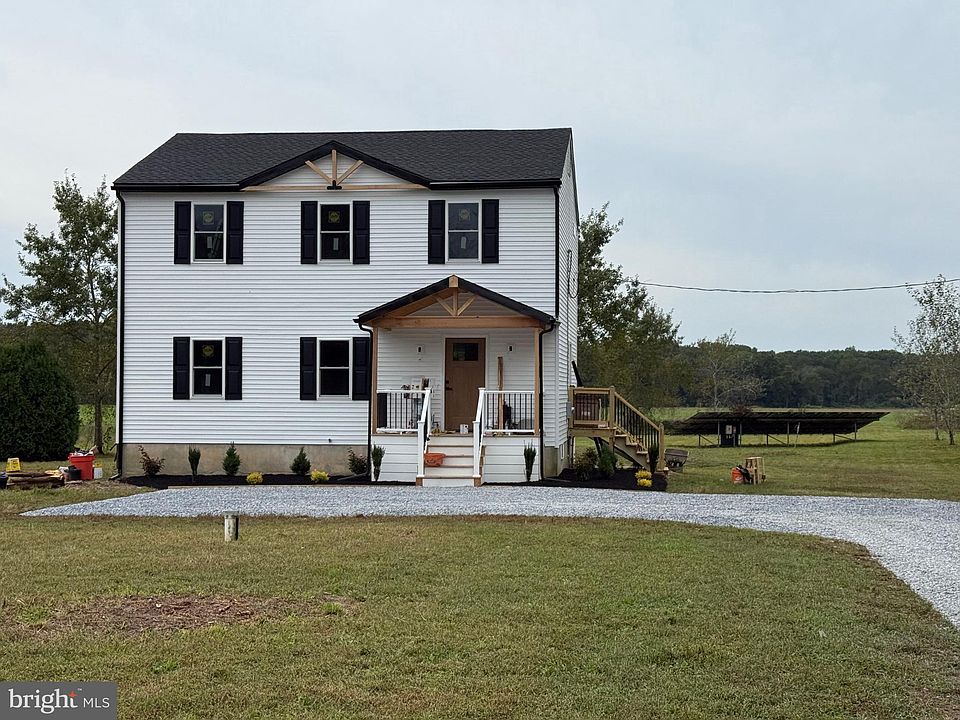 Experience the warmth and character of this traditional two-story home. As you enter, you'll be greeted by the bright and inviting luxury vinyl plank flooring that spans the entire first story. The living room, located to the left, flows effortlessly into the dining area, where you'll find a convenient coffee bar and access to the rear deck, offering picturesque views of the surrounding farm fields. The first floor is also home to a stunningly renovated kitchen, complete with white shaker-style cabinets and butcher block countertops, as well as the entryway to the basement, a stackable washer and dryer, and a half bathroom. The upper level boasts a spacious primary bedroom, featuring ceramic tile flooring and a dual stand-up shower, in addition to two additional bedrooms and one full bathroom. This incredible property boasts a multitude of impressive features, including a full unfinished basement with Billco doors, a stone driveway with ample parking, and stunning views.