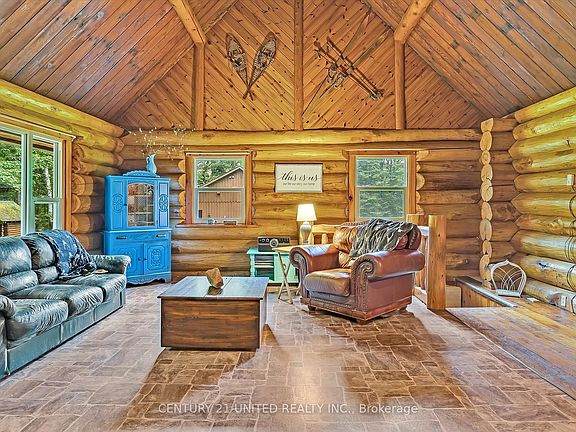 Escape to your private retreat nestled among the trees on a sprawling 32-acre estate, where rustic elegance meets tranquil living. This spectacular custom log home boasts 3 bedrooms and 2 full bathrooms. The possibilities are boundless with the additional features: an insulated, detached garage/shop, a 2-storey barn with stalls, electricity, and water and a charming log bunkie offering a cozy retreat for guests or a personal hideaway. Despite its serene location, convenience is at your doorstep. Just 5 minutes away, you'll find the charming town of Kinmount. For more extensive shopping, dining, and entertainment options, larger towns are only a scenic 20-minute drive away. If you're in search of a private oasis to escape the hustle and bustle of daily life, this is the perfect spot. Seize the opportunity to experience the purest form of country living on these 32 acres