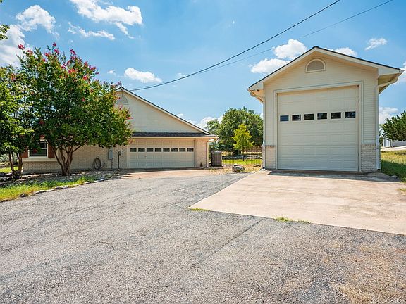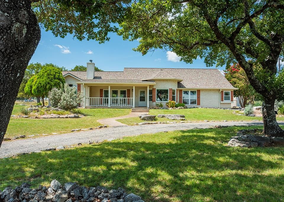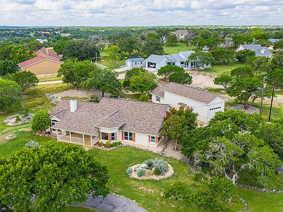 Discover this charming 3-bedroom, 2-bath home with 1,965 sq. ft. on a spacious .83-acre corner lot in Highlands Ranch. A welcoming circle drive & large front porch invite you into relaxed Hill Country living. Inside, vaulted ceilings enhance the open living & dining areas, while the eat-in kitchen offers space for everyday meals. The split floor plan provides privacy with guest bedrooms & an updated guest bath, while the primary suite features an ensuite bath & walk-in closet. Updates include a new front door & screen door, new windows & Bali shades. Oversized rooms are a highlight, from the great room & bedrooms to the laundry. The attached garage offers convenience with a front extension, workbench & sink. A true standout is the RV barn - built to house a 40-ft coach, boat, storage, or workshop - with 2 entrances, a 13 ft roll-up door & front storage. Architecturally designed to complement the home, it adds both function & style. This property combines thoughtful design, unique amenities & exceptional value. Call today to schedule your private showing and see all that this home has to offer!