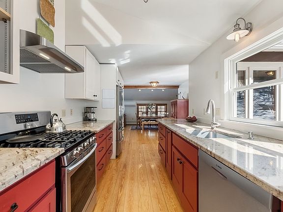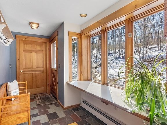 A truly rare offering, this private & tranquil waterfront sanctuary abutting Dickerson Pond is sited on 4.8 acres featuring abundant wildlife & private woodlands. Upon entering the home you are greeted with a remodeled kitchen complete w/stone counters & new stainless appliances which flows seamlessly into the cathedral ceiling dining area. A spacious family room features vaulted ceilings,exposed beams & a stunning floor to ceiling stone fireplace w/wood stove. Large windows allow for natural light to flood the bright and cheerful sunroom where you'll enjoy panoramic views of the backyard oasis. A cozy ensuite master bedroom and 2 additional bedrooms sharing a full bath complete the first level. Upstairs you'll find an open loft offering the versatility of an office or playroom & an additional generously sized bedroom. Enjoy newer appliances 2019/2020,gutters 2019, roof & skylights 2018, Mitsubishi A/C 2020, & Buderus furnace 2011.