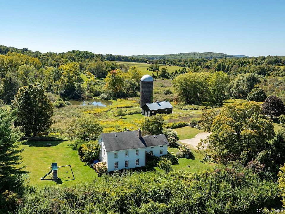 and multiple closets including a walk-in. Its luxurious bath offers a soaking tub, glass shower, and double vanity topped with marble. Two additional bedrooms, one highlighted by exposed beams, are paired with beautifully finished baths featuring porcelain tubs, tiled walls, and elegant stone or brass console vanities. A newly constructed barn provides creative flexibility with two separate art studios and a half bath — ideal for artists, hobbies, or home office use. The surrounding acreage has been thoughtfully designed with raised gardens, a chicken coop, a classic silo, blending the charm of country living with recreational appeal. Professionally landscaped and rich with history, this special property offers an extraordinary combination of privacy, authenticity, and rural beauty — a place where timeless design and natural splendor come together in perfect balance. Conveniently located just 20 minutes from Indian Mountain School, The Hotchkiss School, and Millbrook School, 15 minutes from Metro-North’s Wassaic Station, and 35 minutes from Amtrak in Hudson, the home enjoys effortless