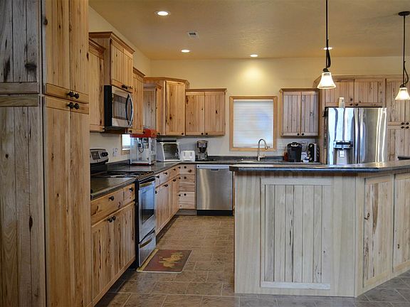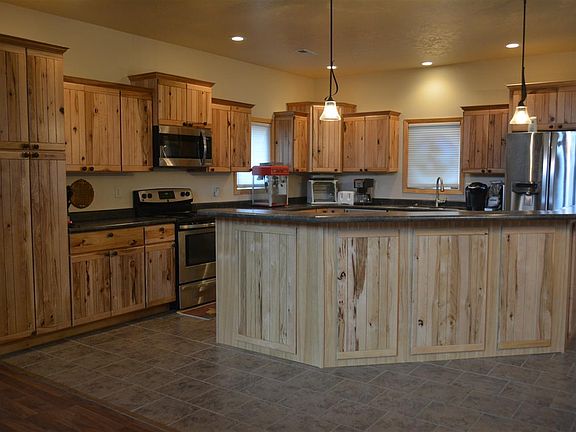 You can have it all...all your dream home desired attributes all in one! This contemporary, rustic, elegant, spacious 5 bedroom, 3 bath home with almost 4 peaceful picturesque acres surrounding in desirable area of Minot. Warm your toes on heated flooring! Huge open concept kitchen/living/dining with pine vaulted ceiling and wood work throughout, large kitchen with island finished with Hickory cabinets. All Stainless Steel appliances. Climb the beautiful pine staircase to a huge open family area with spectacular views and rear exit to upper deck. Huge natural gas fireplace. Outside upper and lower decks in back with staircase, with natural gas grill plumbed in on lower deck. Something you don't hear a lot in North Dakota.....trees, trees, trees - lots of mature pine and apples trees. Entertain outside on double decking and fire-pit. Perfect gardening area. Beautiful view over looking valley and future GOLF COURSE view. See attached Minot document on new park coming soon. Underground storm shelter.