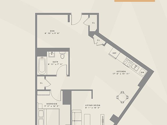 Residence 707 is a generously spacious one-bedroom unit that can be flexed.