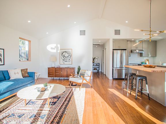 Modern 2-Bed/1-Bath Gem in Culver City- Discover 4720 Campbell, a serene and private 2-bedroom, 1-bathroom front house with luxurious, high-end finishes. This bright home features an open floor plan with soaring exposed beam ceilings, hardwood floors, and a stunning kitchen complete with Samsung stainless steel appliances, leathered marble countertops, and a butcher-block island. Both spacious bedrooms offer deep closets, while the spa-like bathroom includes dual vanities and a soaking tub. The front yard deck is perfect for entertaining. Centrally located near Playa Vista, Culver City, and Venice, this home offers stylish living in a prime location. Culver City Zip Code with LA City Services