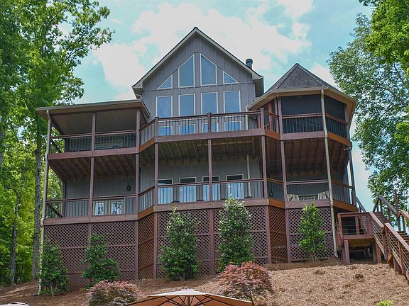 This is one of the most beautiful views of the lake from this home, that is being SOLD FURNISHED! When you walk in the front door you know, Life is Good on the lake! Great open floor plan with vaulted ceiling with exposed beams. Wall to wall windows in the family room that gives you the lake life feel. The kitchen has upgraded cabinets, granite counter tops and stainless appliances. The master suite has access to a screen deck with a wood burning fireplace. The master bathroom offers double vanities, soaking tub and a custom tiled shower. There are two additional bedrooms on the main floor with a Jack and Jill bathroom. The terrace level has a spacious family room, small kitchen with windows offering awesome views, with 3 bedrooms and a full bathroom for your family and friends. The decks are covered and offer a great area for entertaining. It is an easy walk to the water with 181 feet of shoreline with year round water, seawall, covered floating dock. Home has been very maintained.