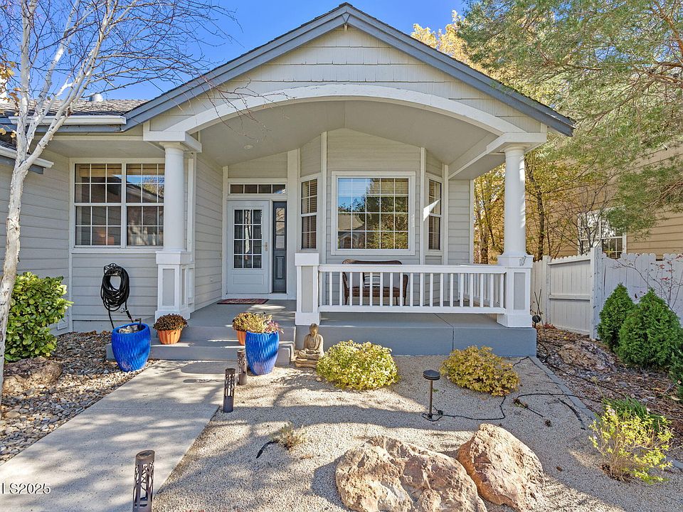 Welcome to your future home at Heritage on the Green in Caughlin Ranch—where lifestyle meets luxury! This gorgeous 5-bedroom, 3-bathroom property sits on a beautifully sized lot and has been thoroughly updated, offering you an immediate key to the highly sought-after Caughlin Ranch life. Imagine sinking into a rocking chair on your front porch, coffee in hand, gazing out at the magnificent western Sierras. That's the invitation of this home. Inside, you are immediately embraced by the warmth of bamboo flooring stretching across the main level, dramatic vaulted ceilings, and a welcoming formal living room. This space invites the outdoors in with a cozy, oversized window seat—the perfect spot to watch the world dust with snow. The entertaining heart of the home is the open-concept family room, which flows beautifully into the kitchen and dining area. Roar the fireplace on a chilly evening or gather friends along the breakfast bar for long, shared conversations while you prepare delicious meals. The kitchen is a dream with new appliances, refreshed cabinetry, a sleek travertine backsplash, and a modern hands-free faucet. Outdoor entertaining is effortless: open the dining room slider and step onto your deck, overlooking the lush, fall-colored canopy of the neighborhood. Also on the main floor, you'll find a versatile first guest room with French doors—use it as a powerful home office, a quiet den, or a beautiful bedroom. Completing this level is a practical full laundry room (complete with a mud sink), a chic, modern guest bath, a second bedroom, and your spacious Primary Suite. The primary suite not only offers walk-in closets but an updated ensuite with a new dual vanity, new glass shower doors, and light-filtering glass blocks. Head downstairs to a bonus level designed for fun! Here you'll find two additional bedrooms, a full guest bathroom, and a wonderful flex space—perfect as a game room, gym, or second living area. The durable, wood-look tile flooring and walk-out basement slider mean pets and messy play are no problem; clean-up is a breeze. Plus, a convenient crawl space access point allows you to easily view major home components. With charming dual patios, a two-car garage and situated on a peaceful street, this home is an investment in long-term enjoyment. The location is unbeatable: Caughlin Ranch boasts 24 miles of walking paths and multiple parks, is zoned for top-rated schools and is just minutes from shopping, freeway access, and the best of Reno's entertainment. We've taken care of everything—check out our brag sheet for details! All that's left is for you to move in.