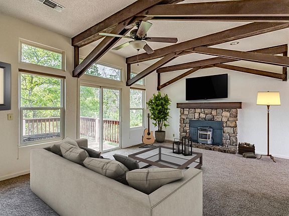 Convenient location with private backyard! Bright open floor plan featuring new interior paint and flooring throughout. Cozy living room with beautiful open beam ceiling. Charming kitchen with dining area and pantry. Split floor plan with guest bedroom and bathroom downstairs. Spacious master suite with relaxing bath. Enjoy the expansive deck overlooking the greenbelt and mountain view