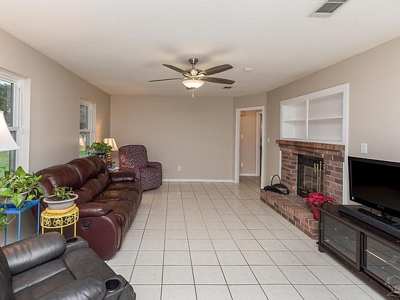 3 bedroom/2 bath cozy home located in a great location in Pace. Master Suite and Two Larger Bedrooms, 2 Bath, Freshly Updated House in Quiet Neighborhood Cul de sac, Detached 12 x 24 Workshop, Florida Room, Ceramic Tile Throughout, Fresh Paint, Split Floor Plan, Nice Size Yard, Galvanized Steel Hurricane Storm Shutters and Hardware, New Interior Doors and Hardware, New White Decor Electrical Devices, New Light Fixtures and Ceiling Fans, with opportunity to enhance kitchen. 1 car attached deep garage. Refrigerator, stove, dishwasher, washer, dryer included. Conveniently located close to shopping and dining, 35 minutes to downtown Pensacola and 45 minutes to Pensacola Beach! Call today to book your private showing!