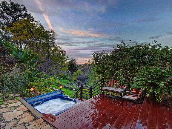 This unique home is a sanctuary for those seeking a peaceful escape from their hectic lives. It is a great home for those who love the feeling of indoor/outdoor living. The large patio has a calming water feature that beckons you to relax and enjoy the view. The additional side patio with lush landscaping is shaded for barbecuing. As you venture into the hillside yard, you can unwind in the private hot tub while enjoying the mature landscaping that surrounds you.