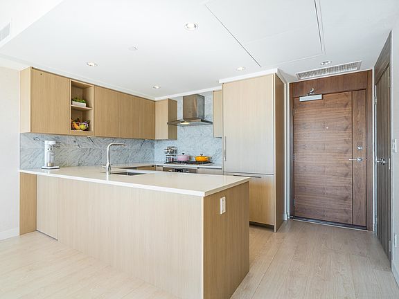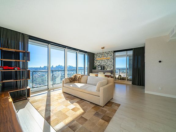 Unobstructed panoramic city viewsWraparound balconyVersace wallpaperElectric and blackout blindsQuartz countertopsHigh-end appliancesOrganized closets