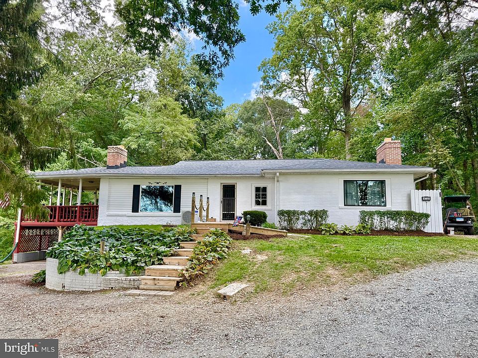 Welcome to this phenomenal 4 bed, 2 full bath rancher on over three acres with woods and trails. This home is 2 in 1. There is a full basement apartment with separate entrance and full service modern kitchen and full bath. Great opportunity to combine households without breaking the bank! Pull into the large circular driveway or park in one of the many parking spaces out front. There is a new wooden ramp leading to the main floor entrance. The main floor houses 3 bedrooms, and a full bathroom with tub/shower combo, a living room and an open concept dining room/kitchen which comes with a non-attached island, all appliances, butcher block counters and deep farm sinks. There is a working fireplace in the living room, and an as-is fireplace in one of the bedrooms. A large covered deck extends off the side of this floor serving as a 3 season room that looks out over the private yard, woods and surrounding farmland. Taking the stairs to the basement brings you to another finished level with its own living area, full kitchen with granite countertops, all appliances and cabinetry. Also on this level is a laundry room, large storage room/worshop, a game room, bedroom and full bath. This floor has its own ground level entrance, making it the perfect in law suite or apartment. Behind the house is a concrete patio that looks out over the cleared portion of the rear yard and surrounding forest. There are golf cart/walking trails all through the 2.6 acres of wooded property. House also comes with two sheds and a chicken coop. The roof is only 4 years old and the exterior will be completely painted white before settlement. This house has been well maintained and cared for and is waiting for you! We will provide passing well & septic reports from 9/25